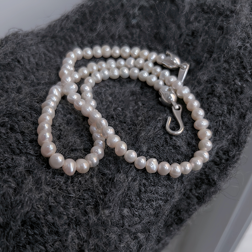 |純銀項鍊 925|銘刻 • 淡水珍珠 毛衣鏈頸鏈鎖骨鏈戒指耳環 單只販售