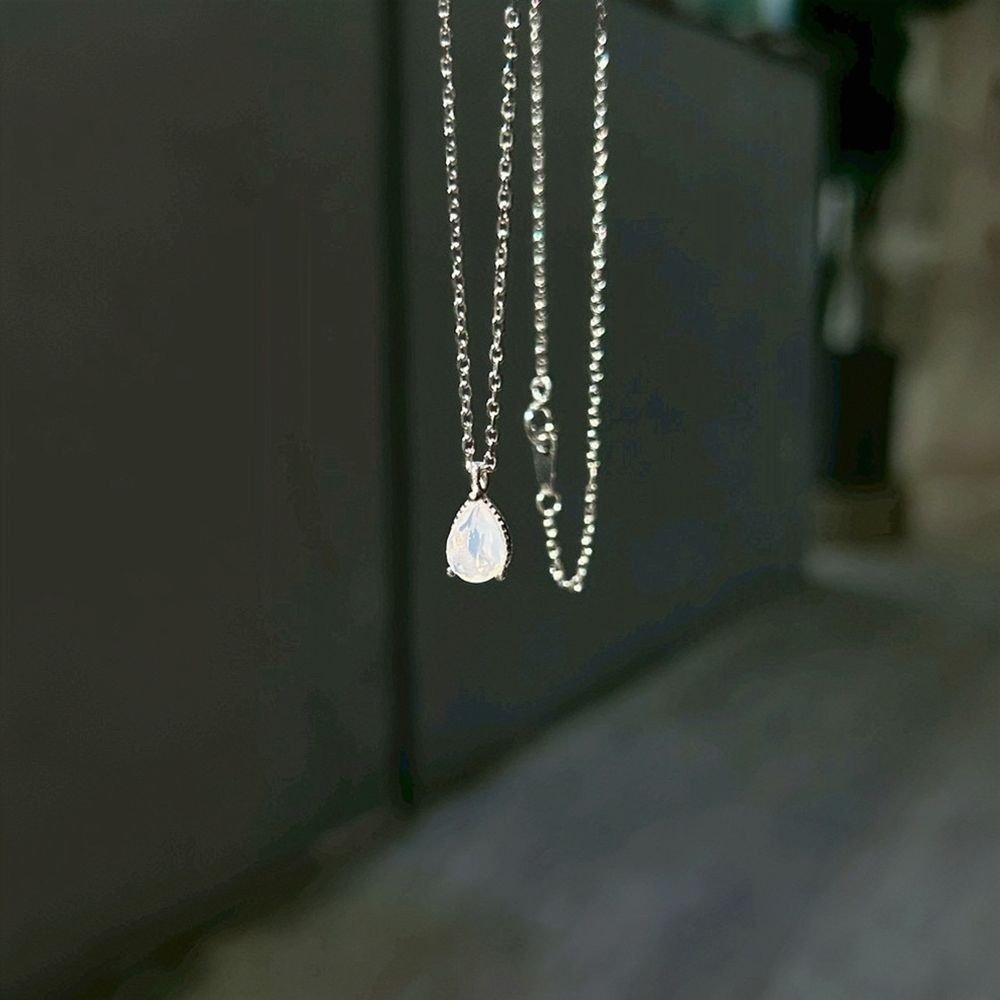 |純銀項鍊|漫天 • 粉色水滴 毛衣鏈頸鏈鎖骨鏈 單只販售