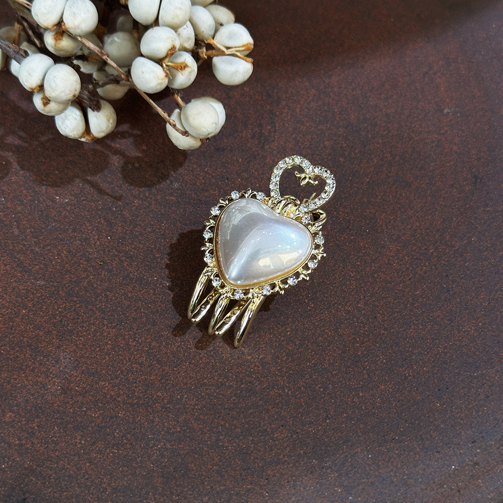 |鯊魚夾|獨特 ‧ 愛心珍珠鋯石 髮夾邊夾瀏海夾髮飾 單只販售