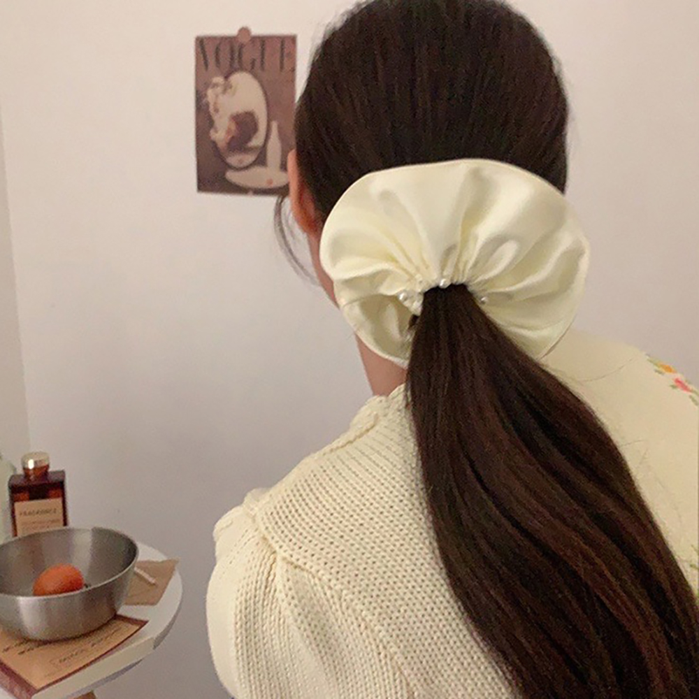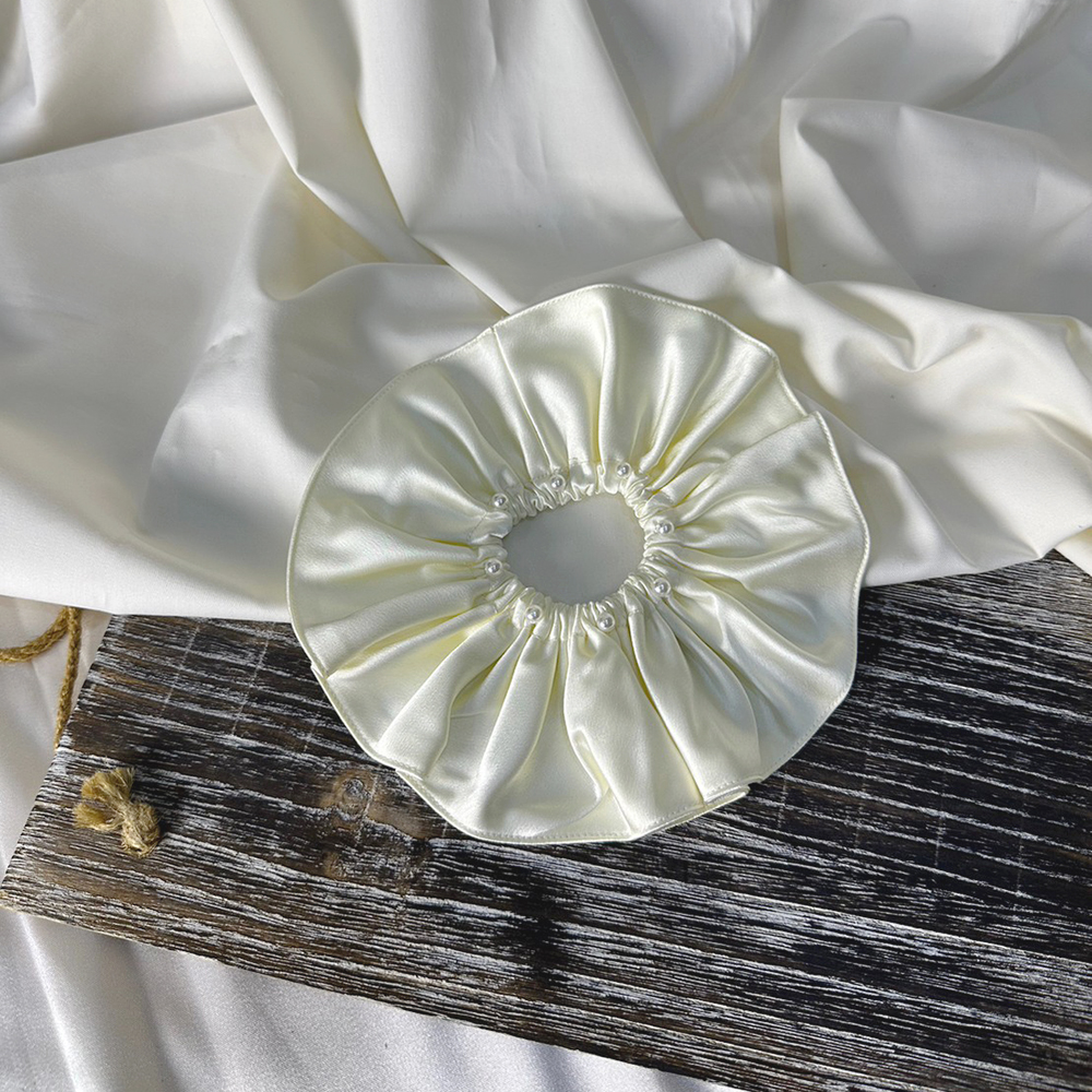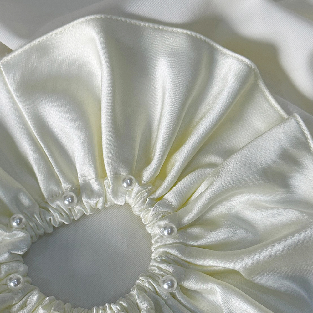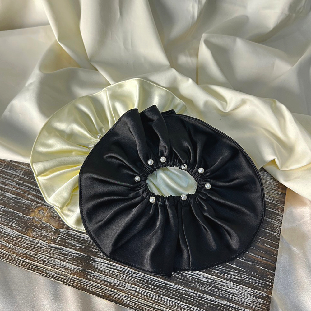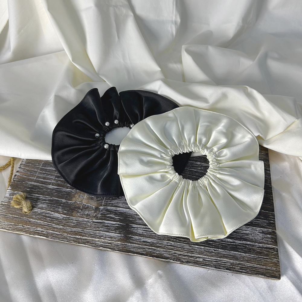 |大腸圈|寂寞 ‧ 珍珠荷葉布圈 髮圈髮束 單只販售