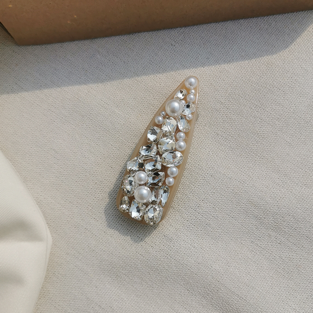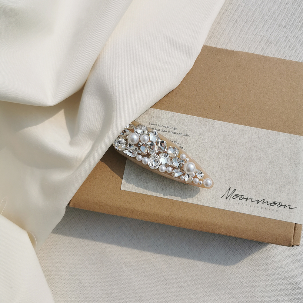 材質| 水鑽、人造珍珠、樹酯、合金彈簧夾、防滑皮套