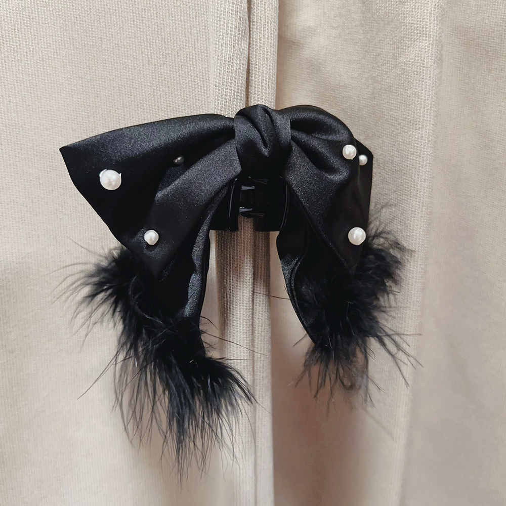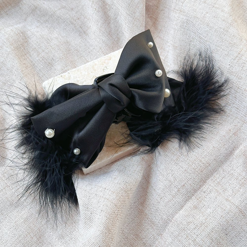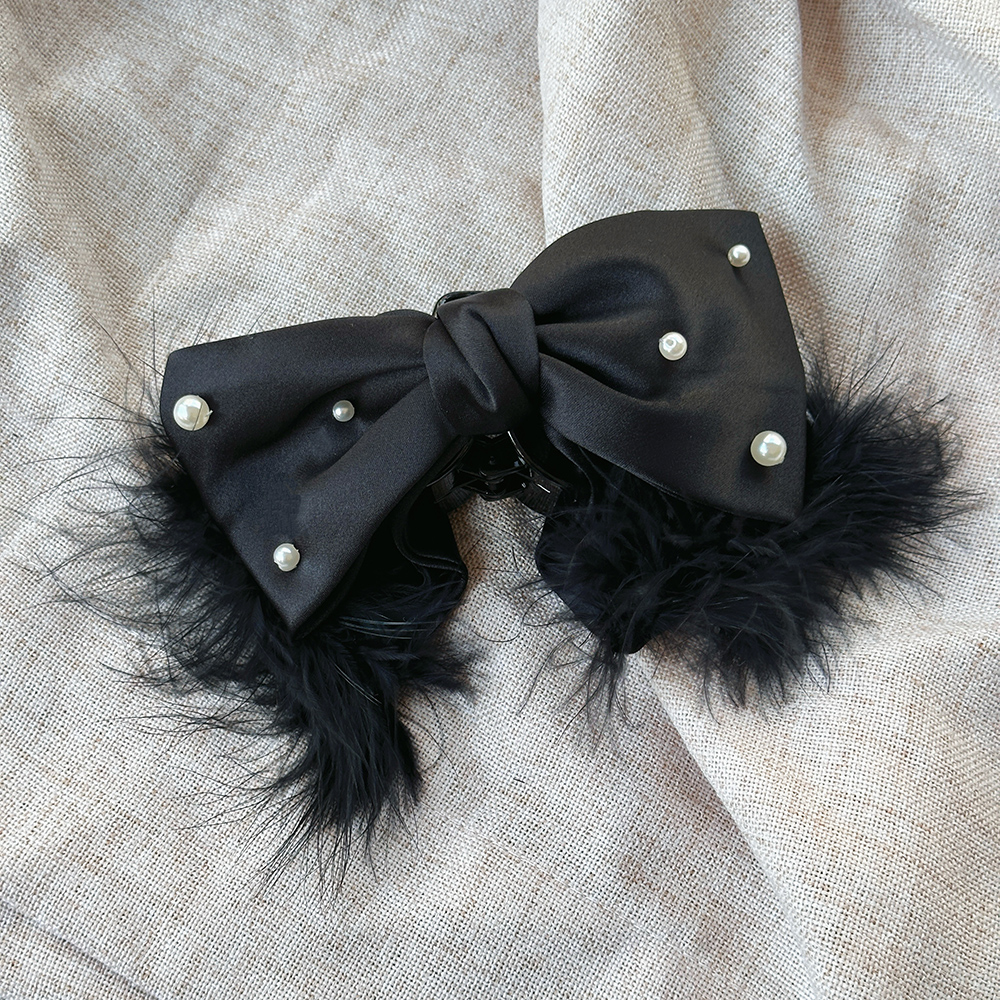 |鯊魚夾|深刻 • 毛毛珍珠蝴蝶結 布藝髮夾盤髮 單支販售