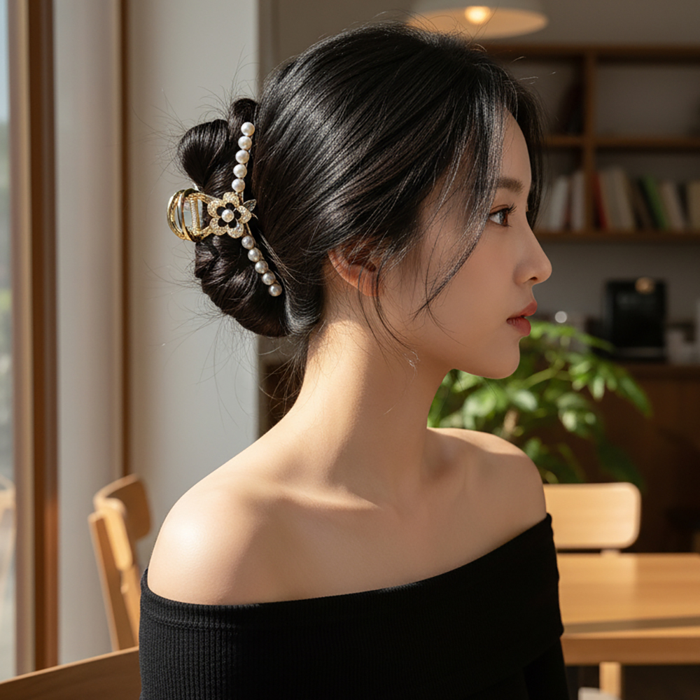 |鯊魚夾|若寒 • 花花珍珠 髮飾髮夾盤髮夾子抓夾 單支販售