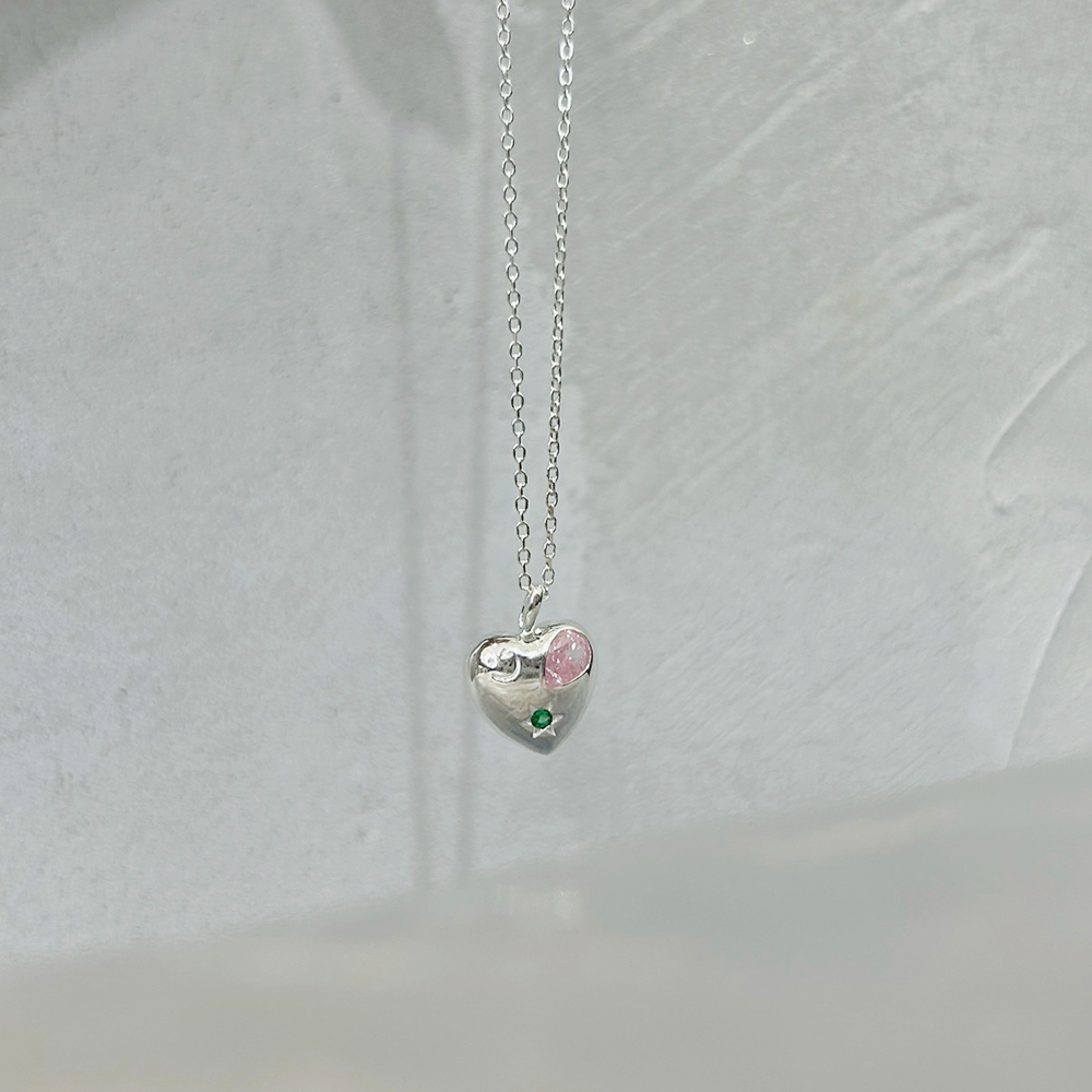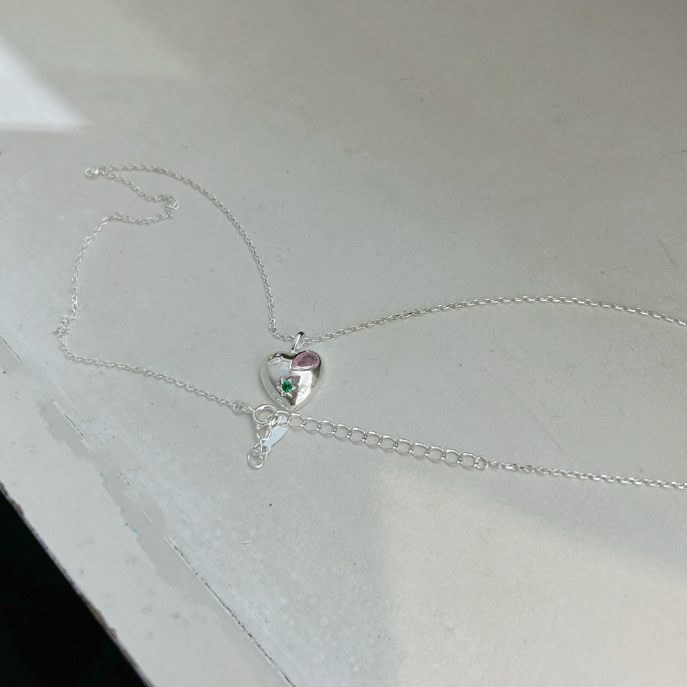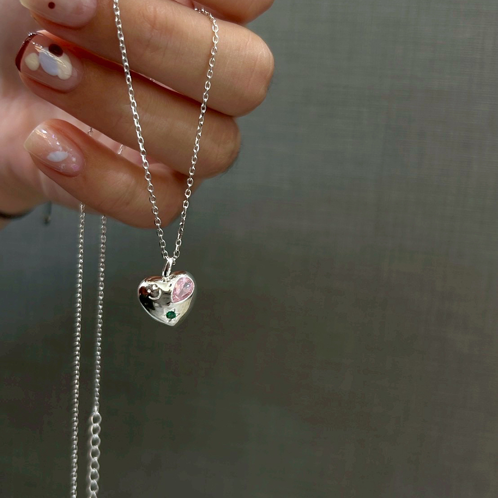 |純銀項鍊 925|鍾情 • 愛心粉鋯石 毛衣鏈頸鏈鎖骨鏈 單只販售