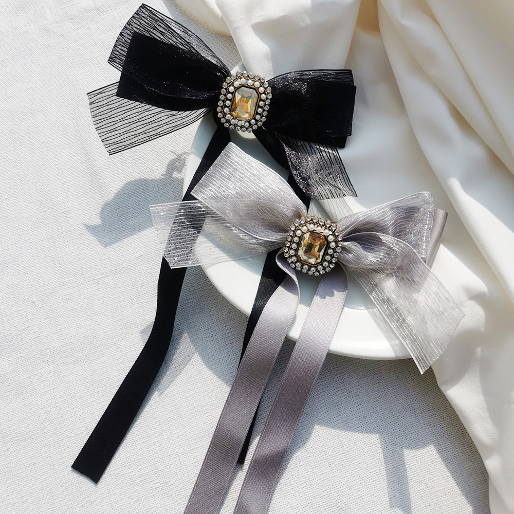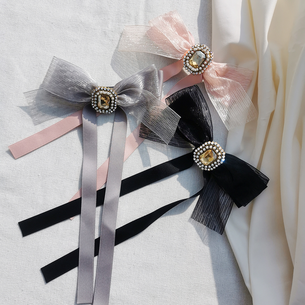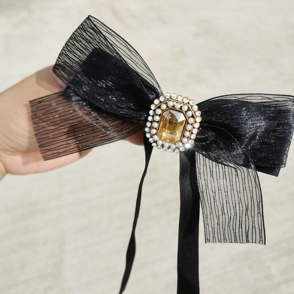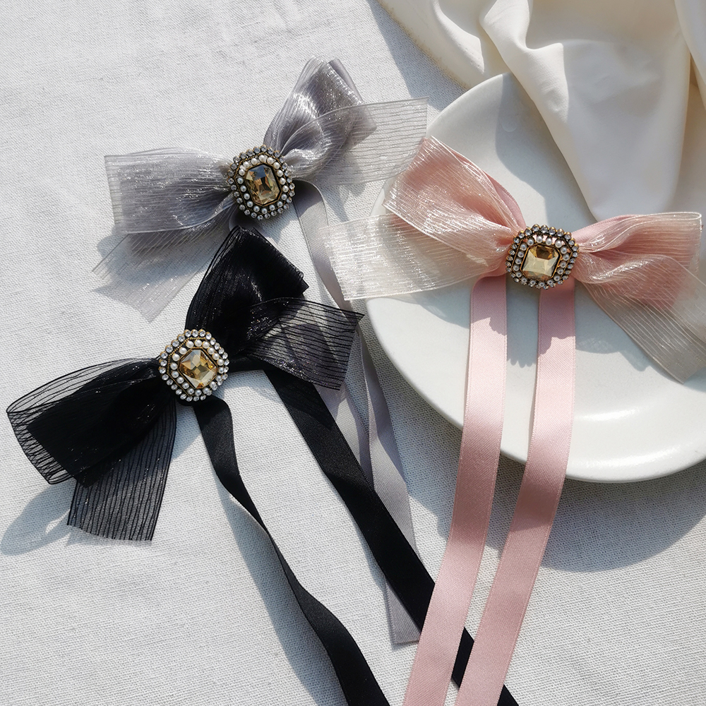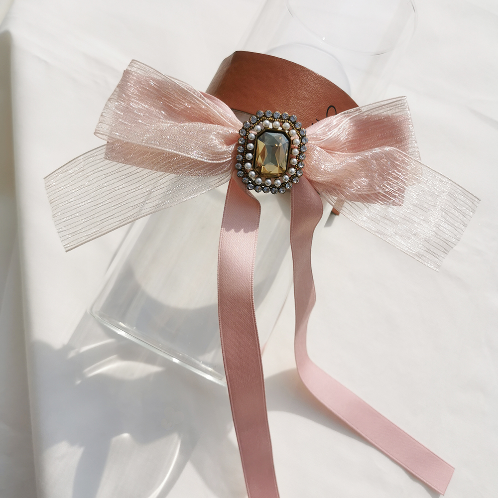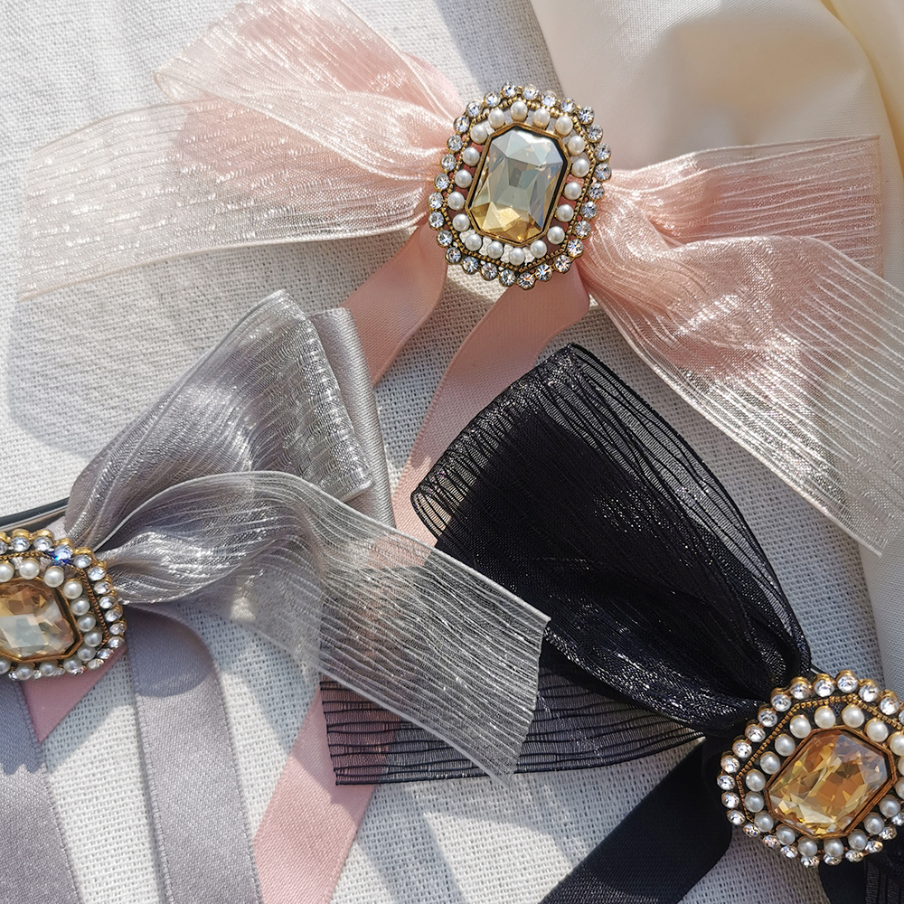 材質| 珠光紗、緞帶、珍珠、鋯石、合金、合金彈簧夾、防滑皮套