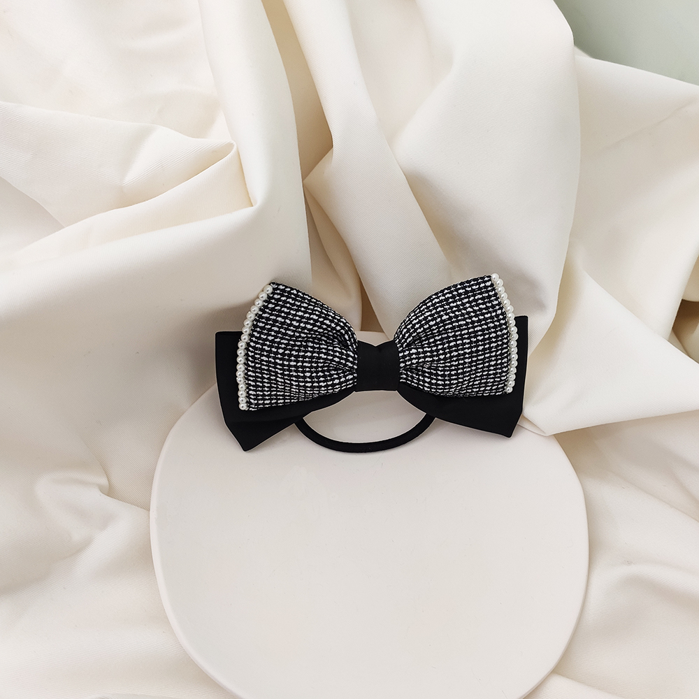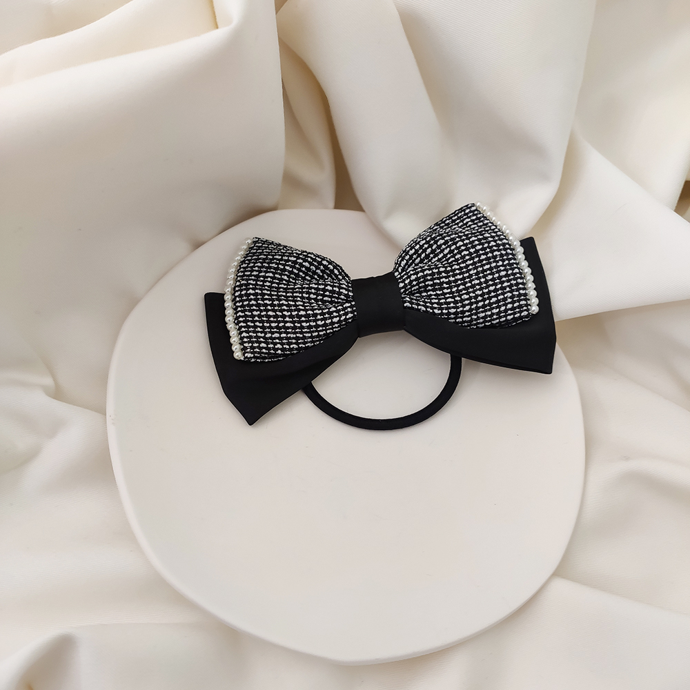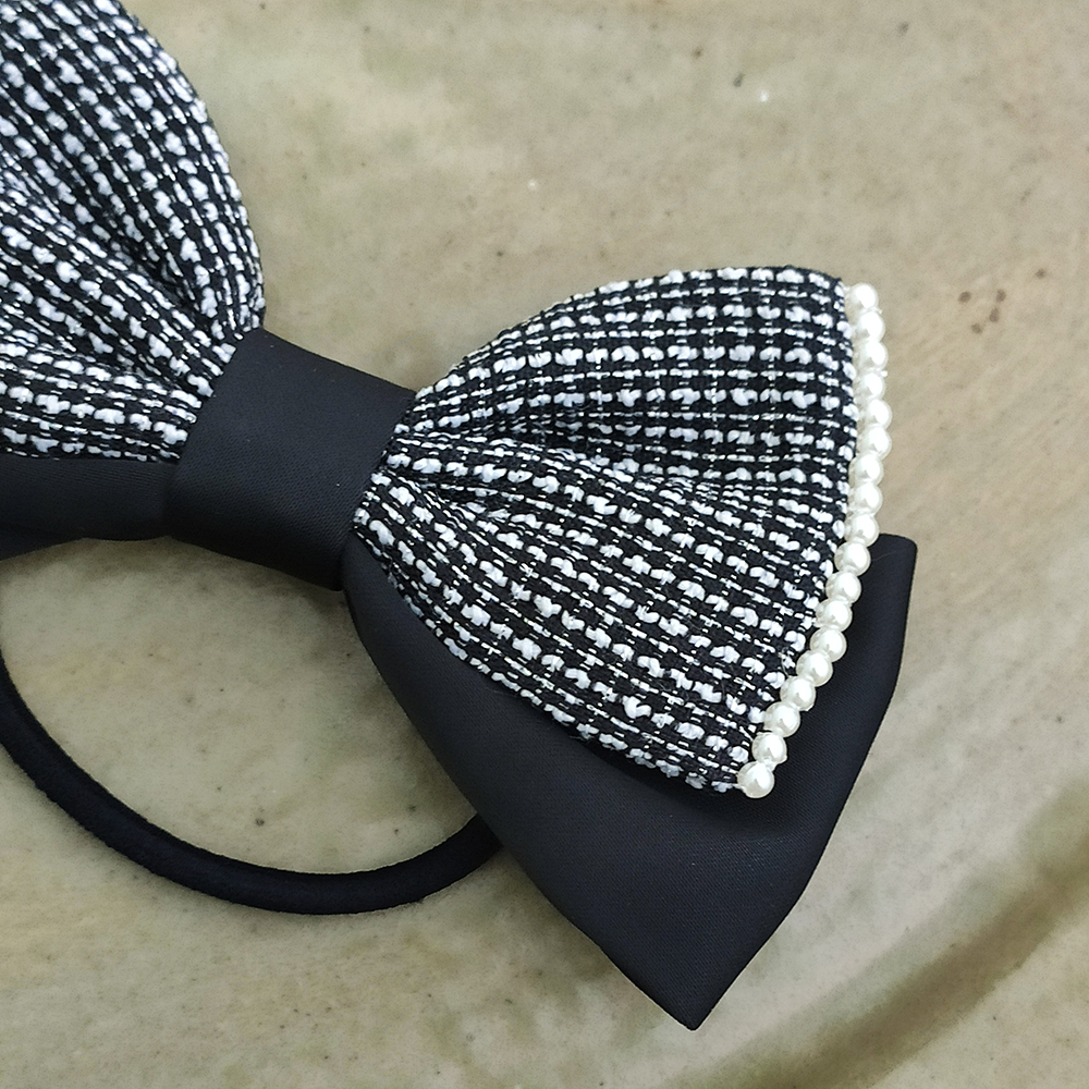 |髮圈|珍珠千鳥格蝴蝶結 髮圈髮繩大腸圈 單隻販售 (小香風)