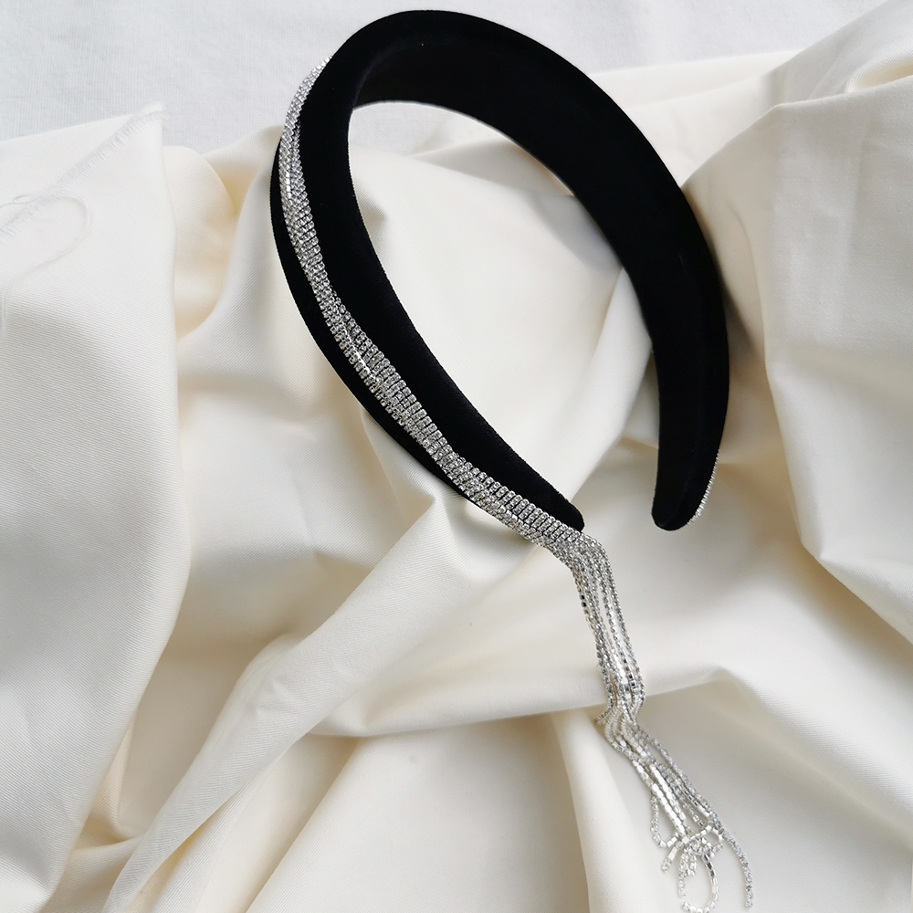 |髮箍|青黛煙雨 ‧ 鋯石交錯流蘇 髮夾髮飾 單隻販售(氣質優雅高貴)