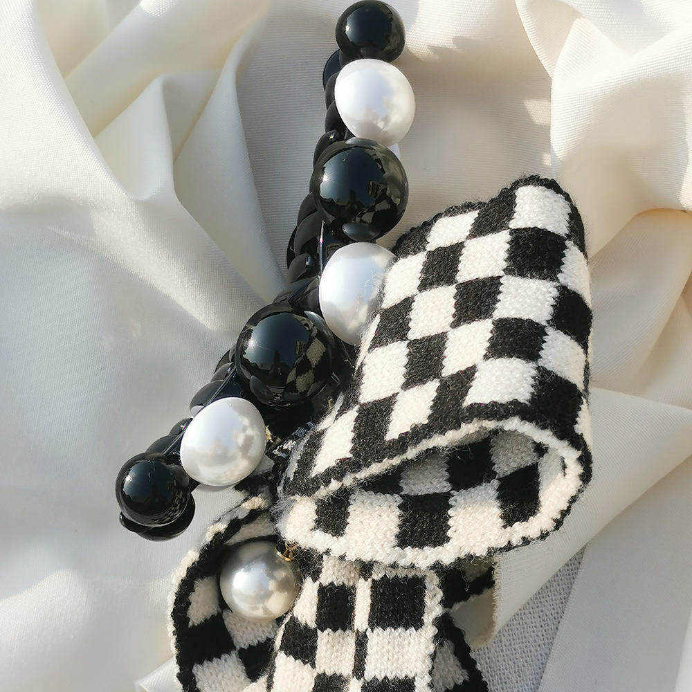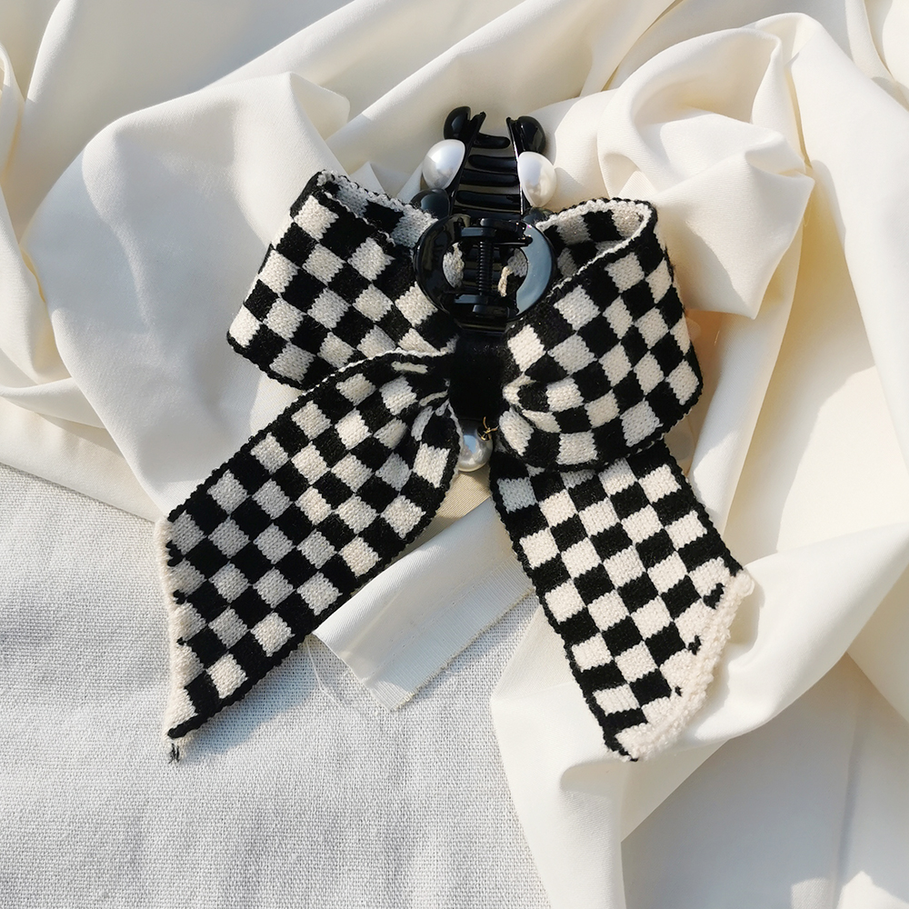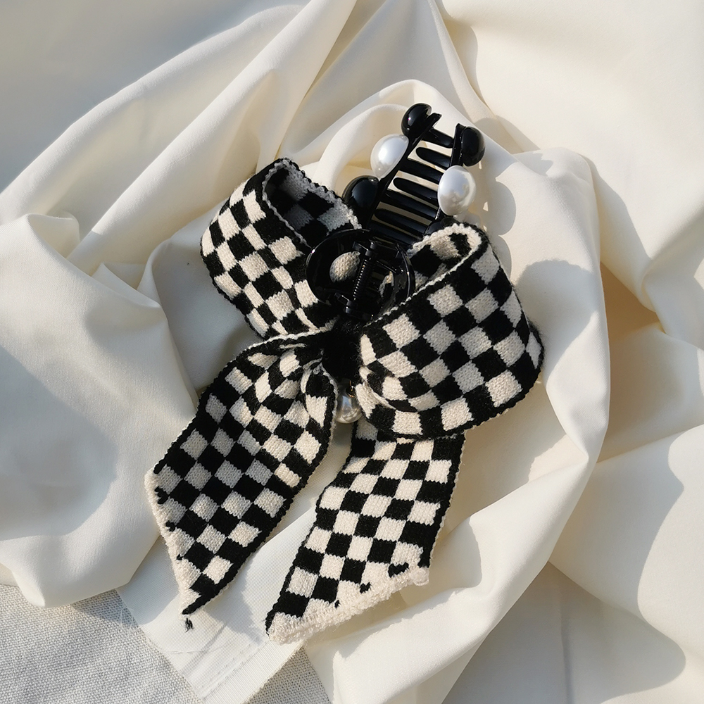|鯊魚夾|嚴肅的奧賽羅 • 毛線棋盤格 髮夾髮飾邊夾壓夾鯊魚夾 單隻販售