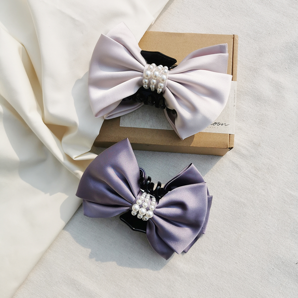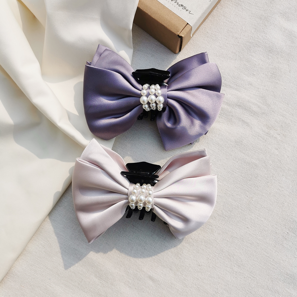 |鯊魚夾|最初 ‧ 珍珠環繞雙層蝴蝶結 髮夾髮飾盤頭包頭 單只販售
