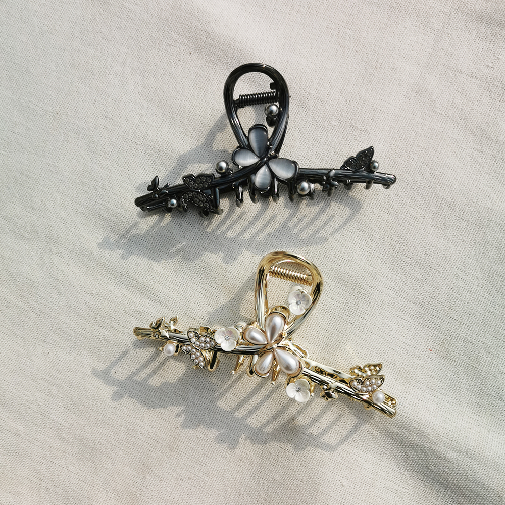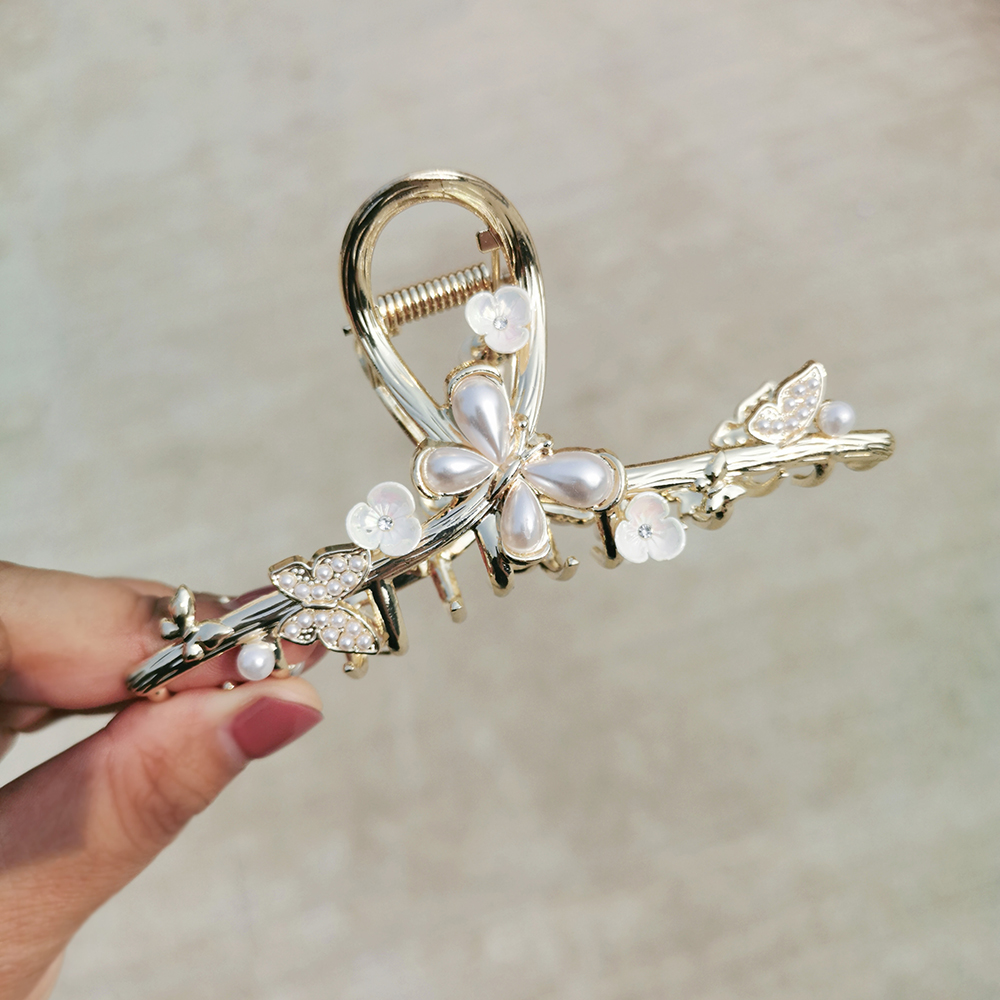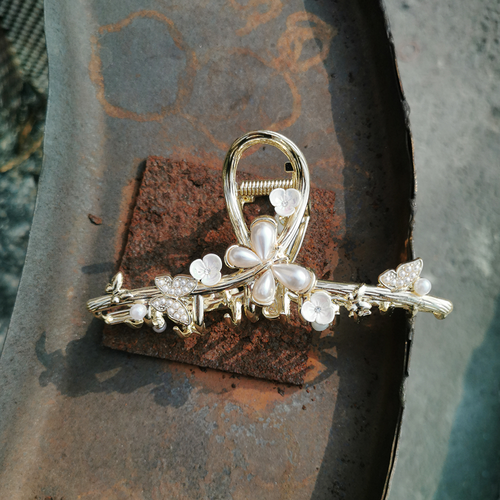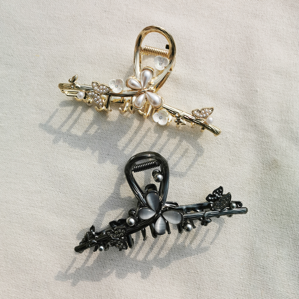 |鯊魚夾|走入時光 ‧ 珍珠花與蝴蝶 髮夾髮飾邊夾壓夾鯊魚夾