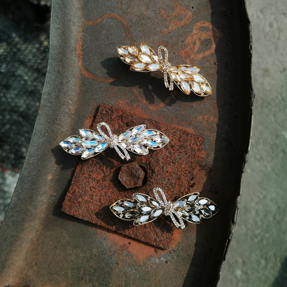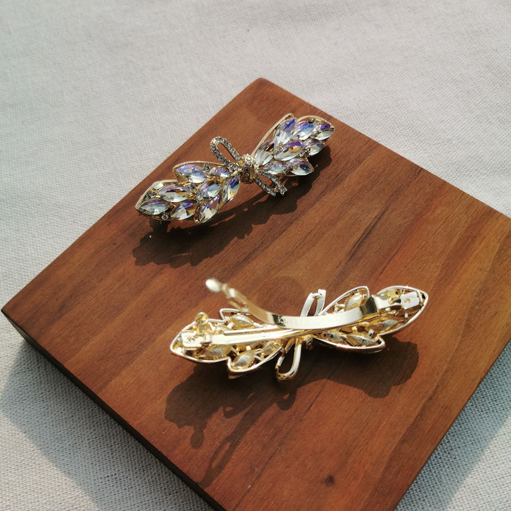 |彈簧夾|淺秋 ‧ 水晶蝴蝶結 髮夾髮飾(優雅美麗)