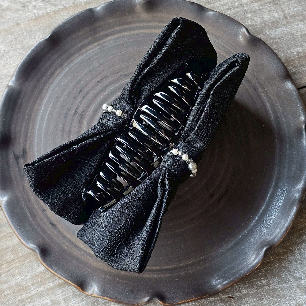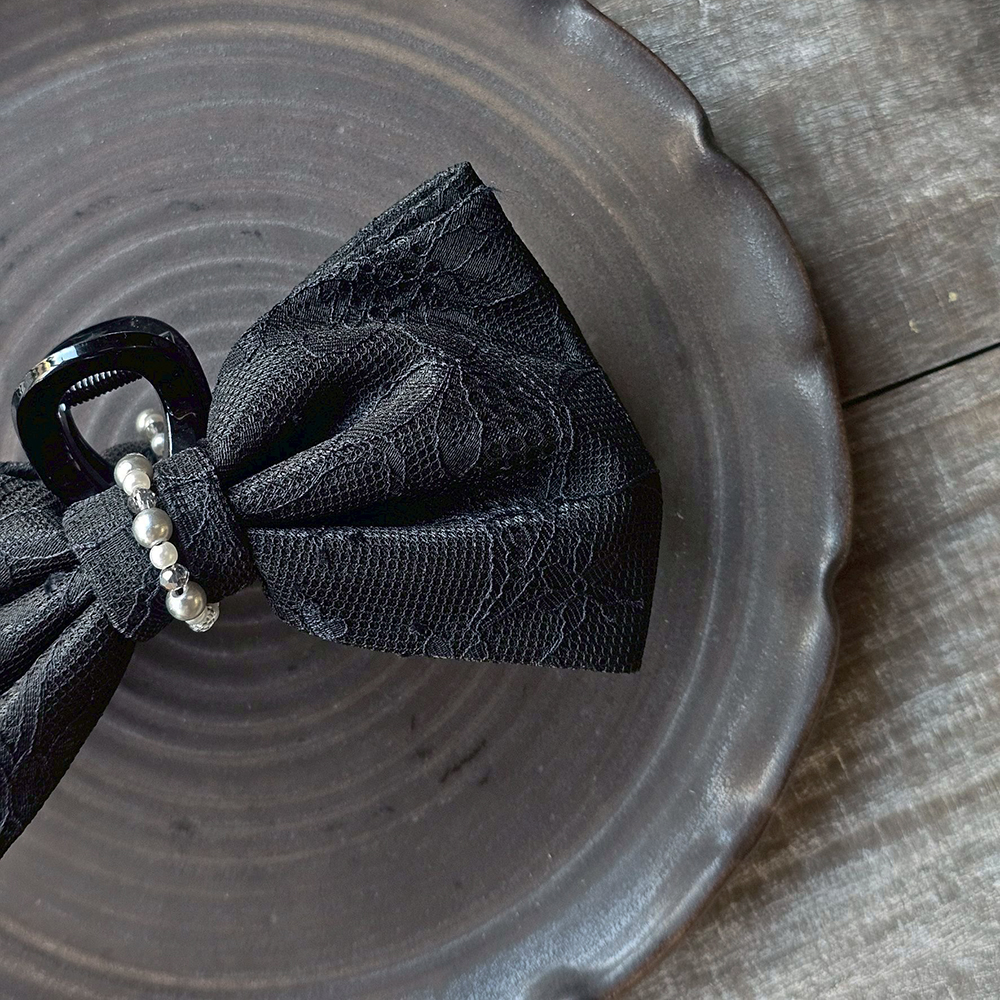 |鯊魚夾|隨風 • 蕾絲蝴蝶結 布藝髮夾盤髮 單支販售