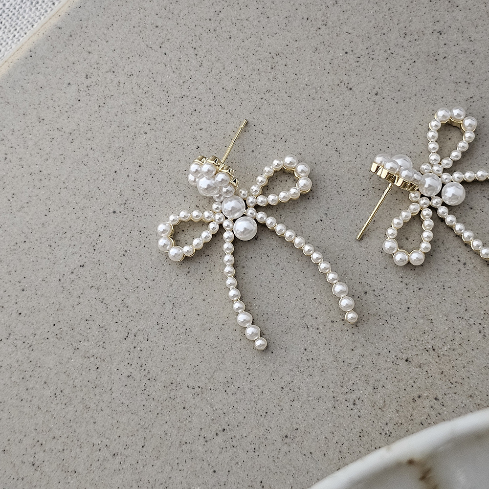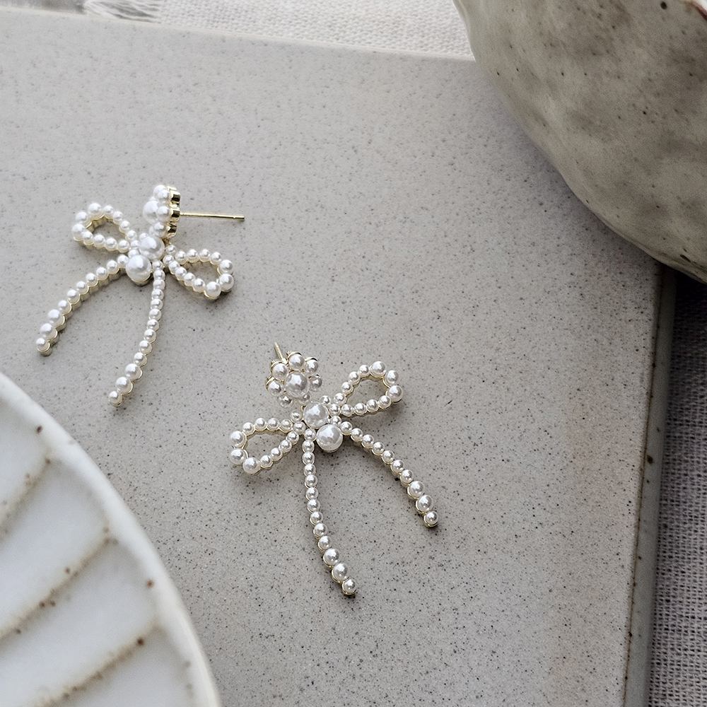 |耳飾|花結 • 珍珠蝴蝶結 耳針耳環
